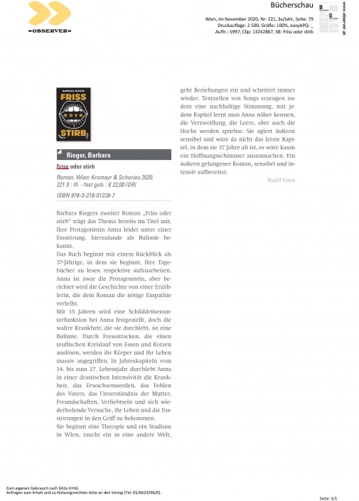 Friss oder stirb – Rezension im Oberösterreichischen Volksblatt