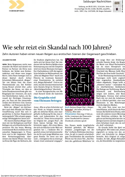 Reigen Reloaded – Besprechung in den Salzburger Nachrichten